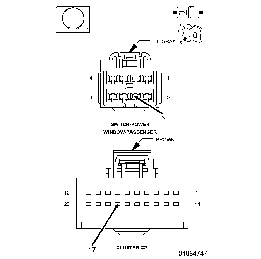 1. Measure the resistance of the (P696) Passenger Door Lock Switch Mux circuit between the Cluster C2 connector and the Passenger Window/Door Lock Switch connector.