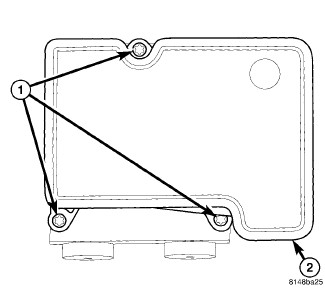 6. If equipped with ESC(R) or traction control, install the four screws (1) attaching the ABM (2) to the HCU. Tighten the mounting screws to 2 Nm (17 in. lbs.).