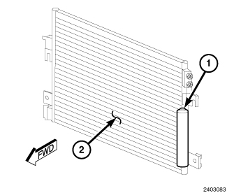 The A/C receiver/drier is part of the high-side of the A/C system. The A/C receiver/drier stores any unused refrigerant, filters and helps remove moisture from the refrigerant, and retains any refrigerant vapor that may leave the A/C condenser, until it becomes a liquid. The A/C receiver/drier is located on the right front frame rail or on the A/C condenser, depending on engine and transaxle application.