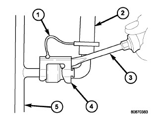 4. With the commercially available fuel line removal tool (1) still inserted, remove the quick-connect fitting from the fuel system component.