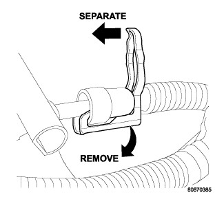 1. Unlatch the small arms on the end of clip, swing away and separate from the fuel system component.