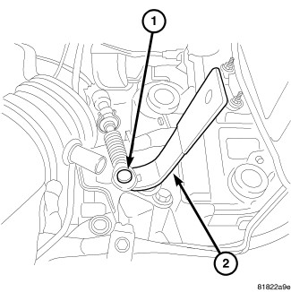 9. Disconnect shift selector and crossover cable (1) from levers. Remove cables and secure out of the way.
