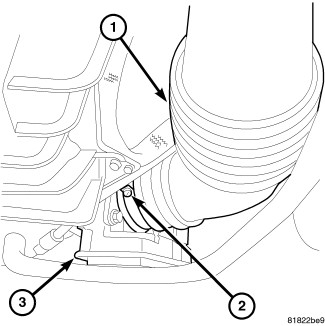 26. Remove the transmission crossmember mounting bolts (2, 3).