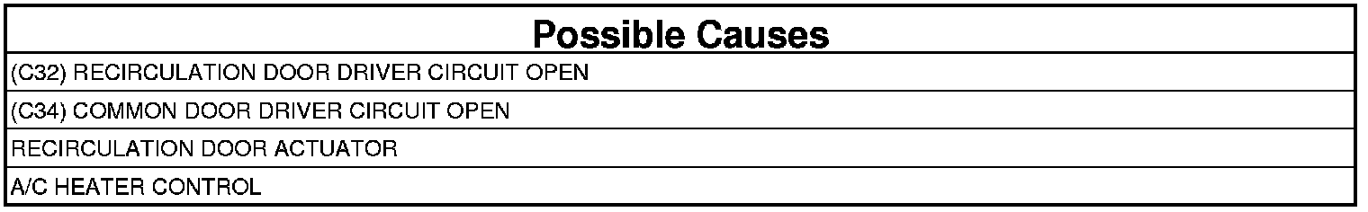 - Repair the (C32) Recirculation Door Driver circuit for an open or high resistance.