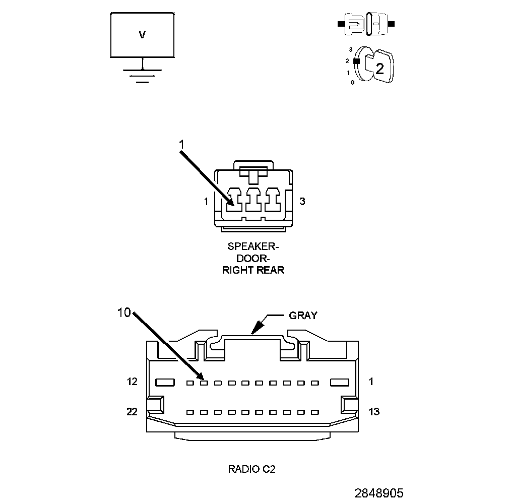 The (X206) Right Rear Speaker (+) circuit and the (X296) Right Rear Speaker (-) circuit are outputs of the Radio. The Radio controls and monitors these circuits for a concern.
