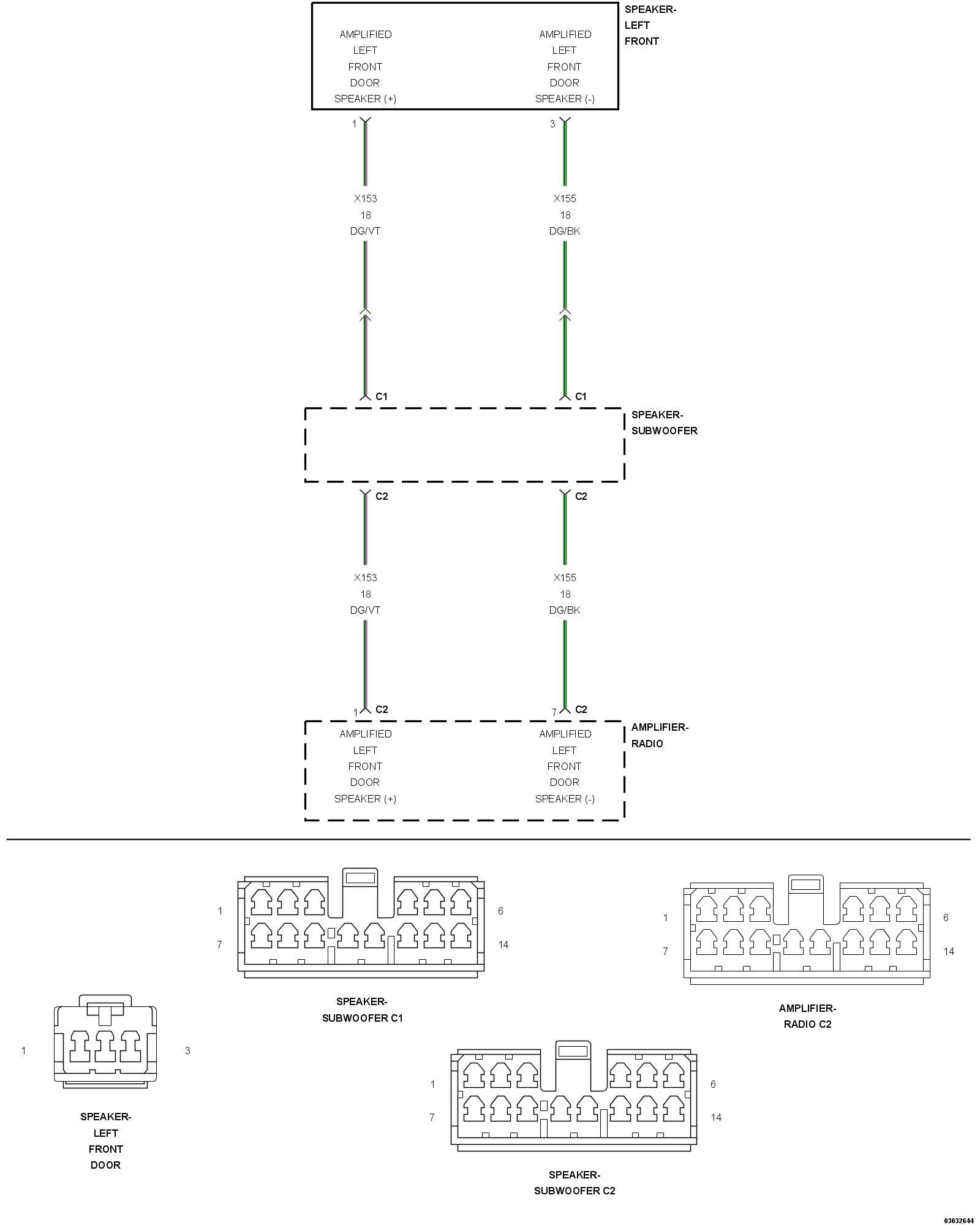 - Repair the (X155) Amplified Left Front Door Speaker (-) circuit for a short to voltage.