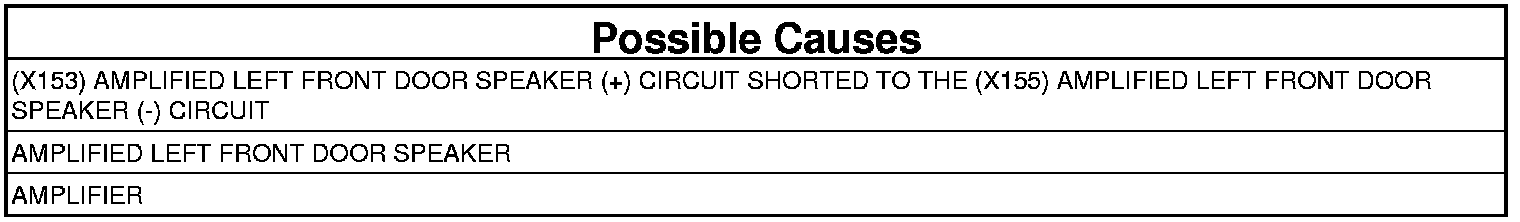 - Repair the (X153) Amplified Left Front Door Speaker (+) circuit for a short to the (X155) Amplified Left Front Door Speaker (-) circuit.