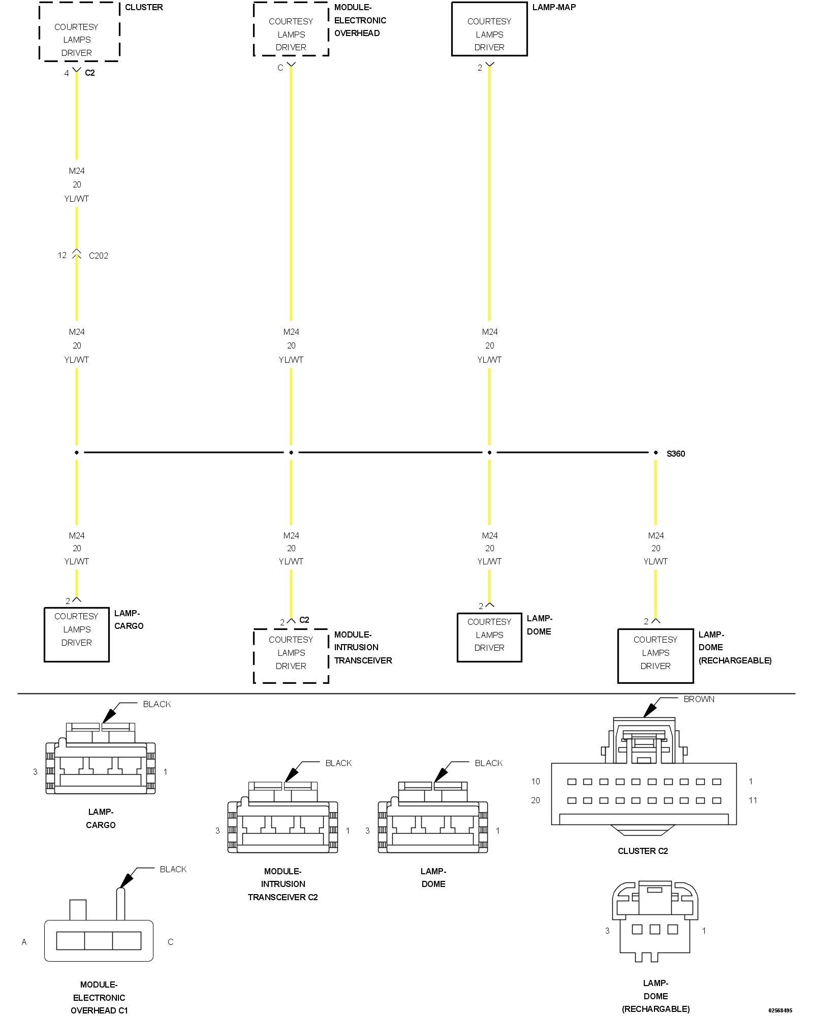 - Repair the open in the (M24) Courtesy Lamp Driver circuit.