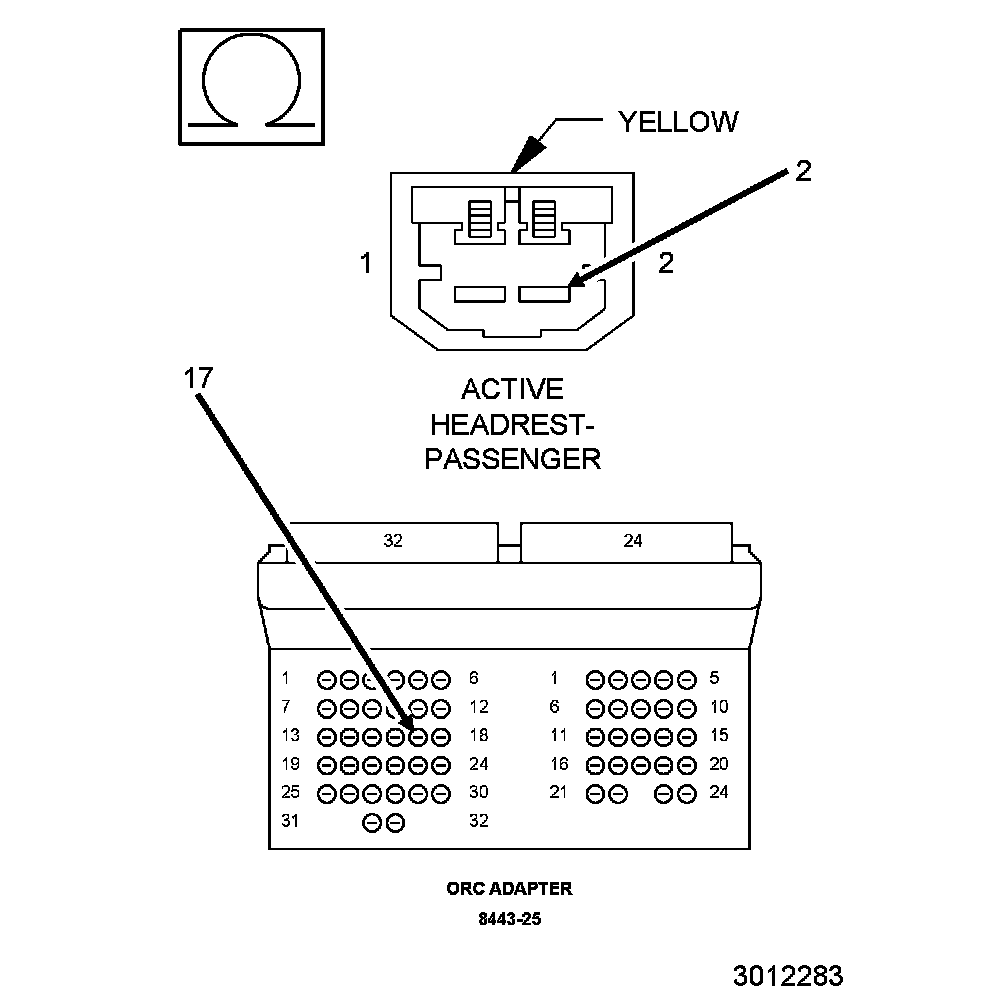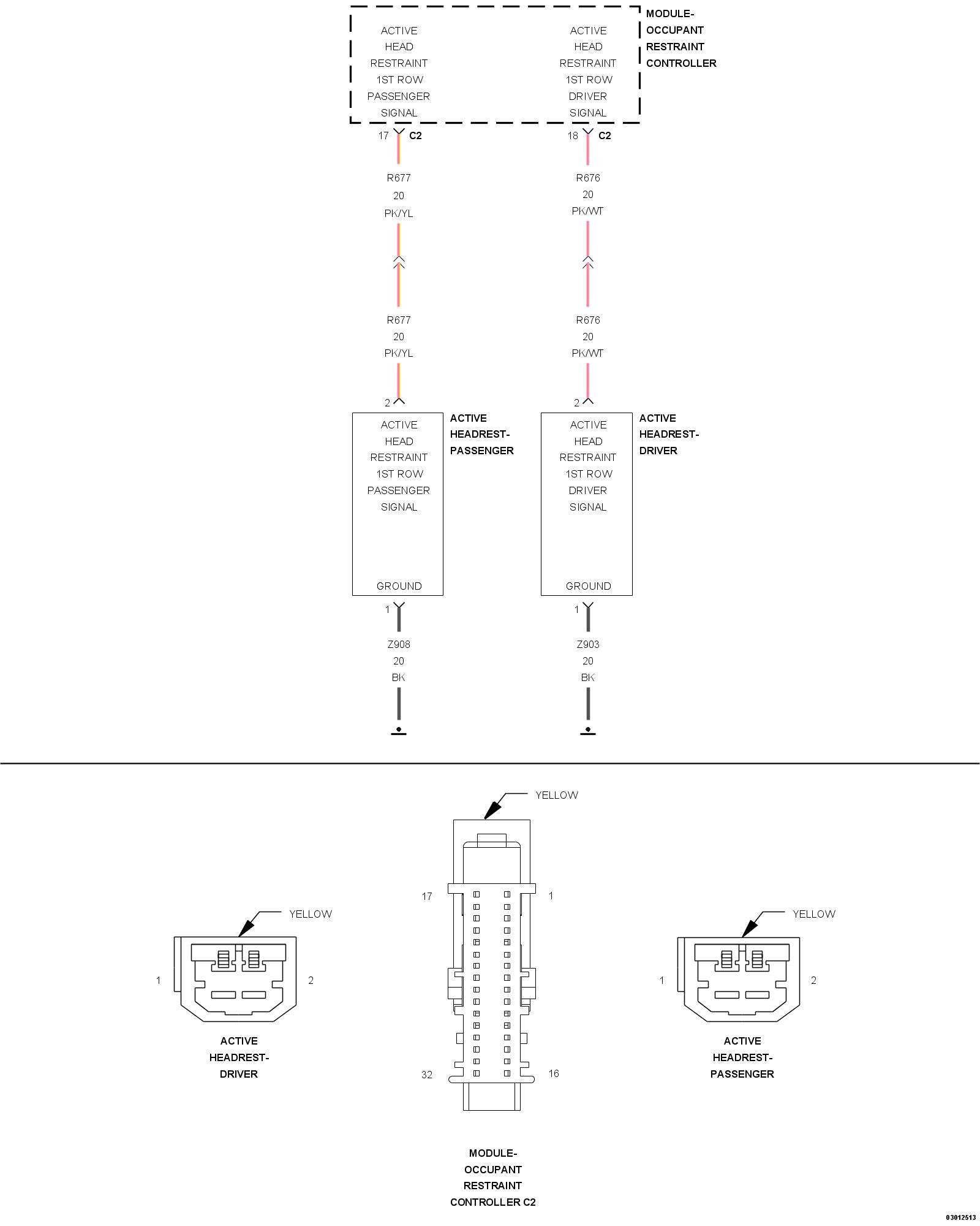 1. Measure the resistance of the (Z908) Ground circuit between the Driver Active Head Rest and ground.