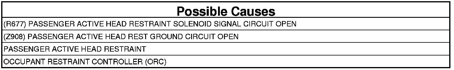 This code will set, if the ORC detects High voltage or an Open on the (R677) Passenger Active Head Restraint Solenoid Signal circuit.