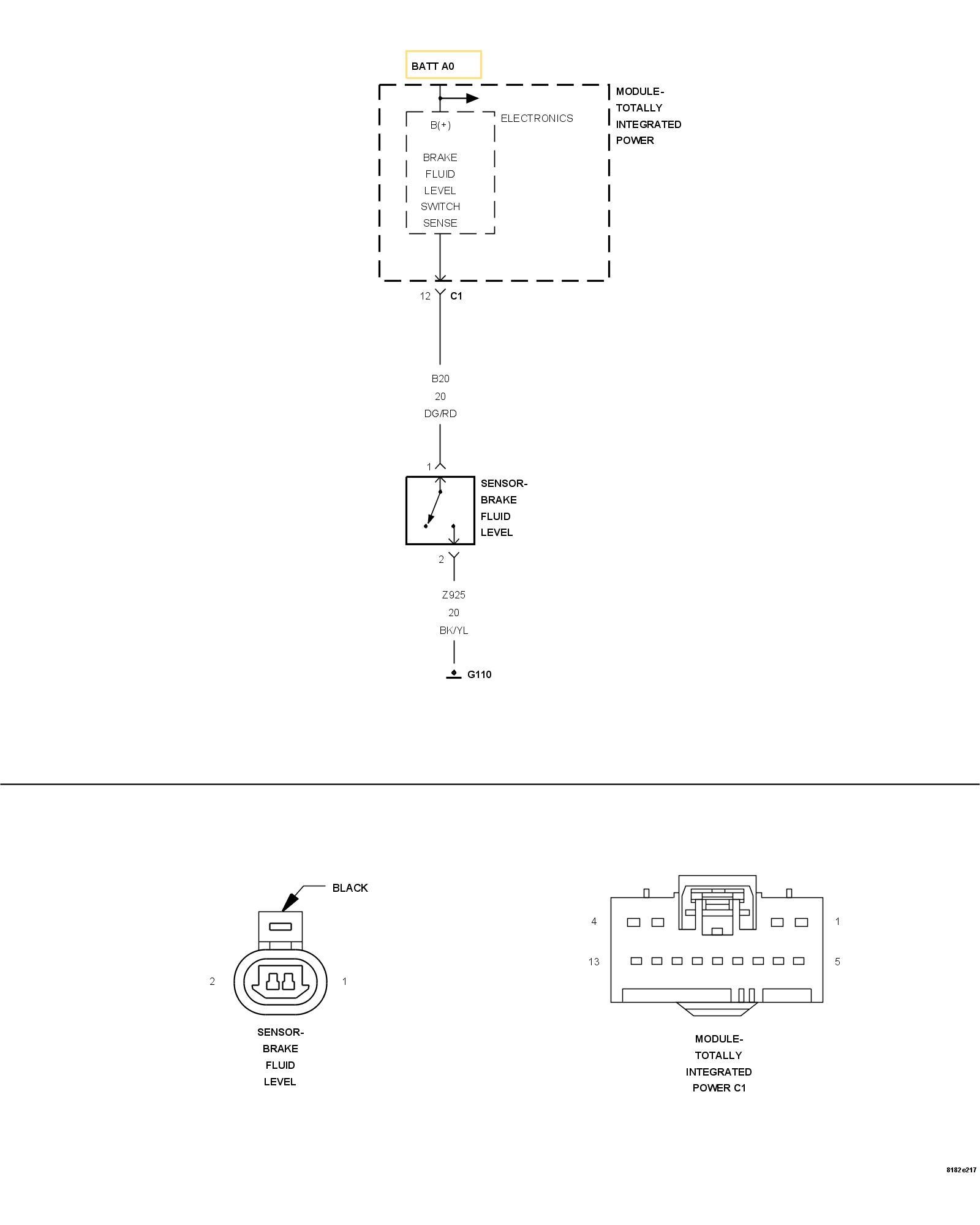 - Repair the open in the (B20) Brake Fluid Level Switch signal circuit.