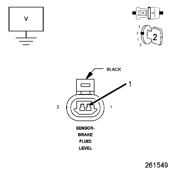 4. Measure the voltage of the (B20) Brake Fluid Level signal circuit in the Brake Fluid Level Switch harness connector to ground.