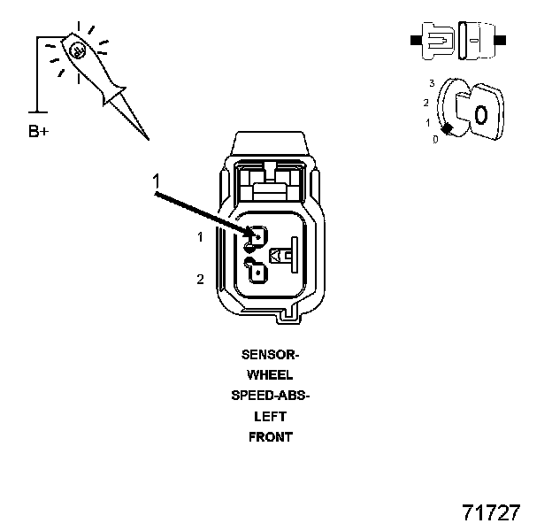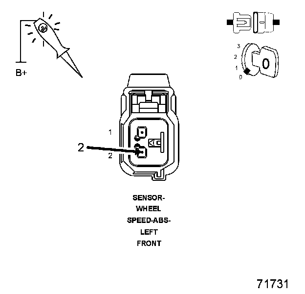 2. Using a 12-volt test light connected to 12-volts, probe the (B8) Left Front WSS Signal circuit.
