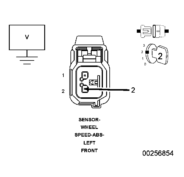 2. Measure the voltage between the (B8) Left Front WSS Signal circuit and ground.
