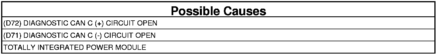 - Repair the (D72) Diagnostic CAN C (+) circuit for an open.