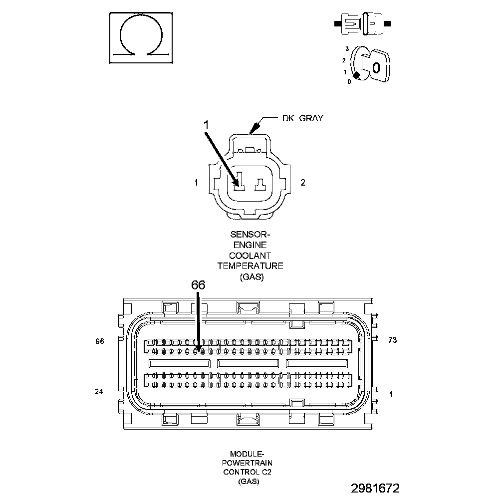 1. Using the wiring diagram/schematic as a guide, inspect the wiring and connectors between the Engine Coolant Temperature Sensor and the Powertrain Control Module (PCM).