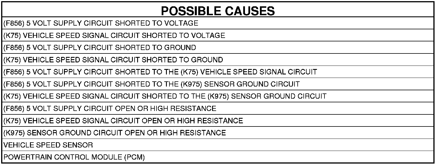- Repair the (F856) 5 Volt Supply circuit for a short to the (K75) Vehicle Speed Signal circuit.