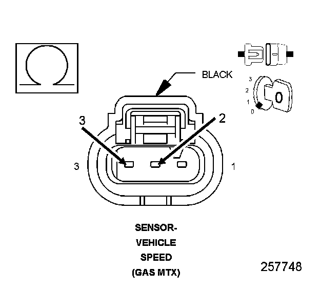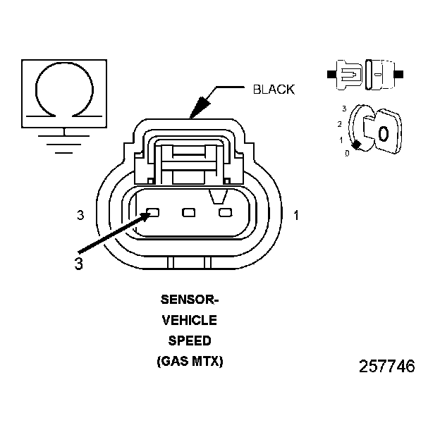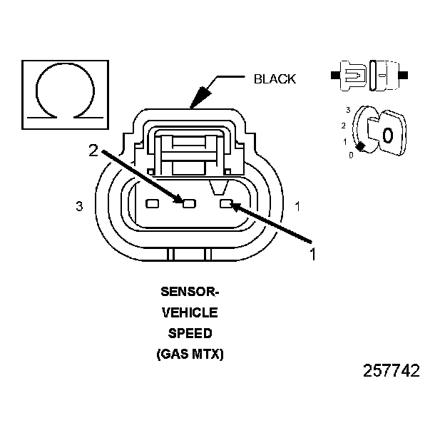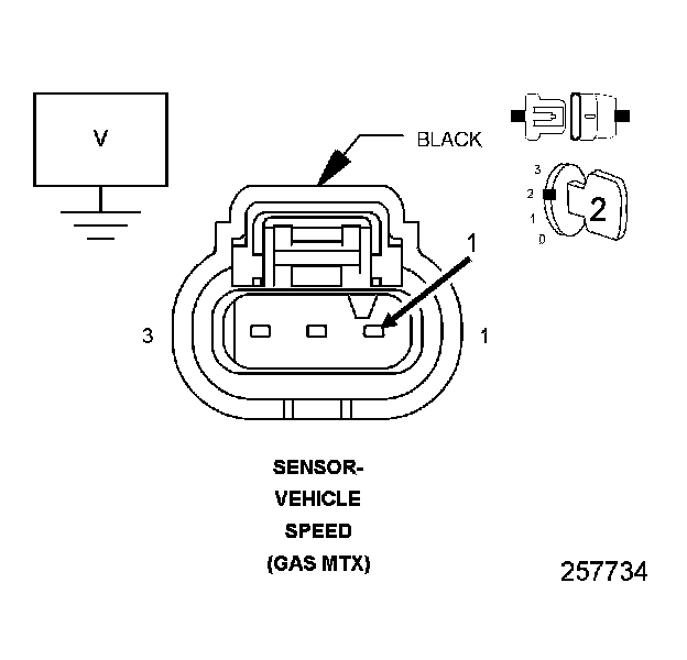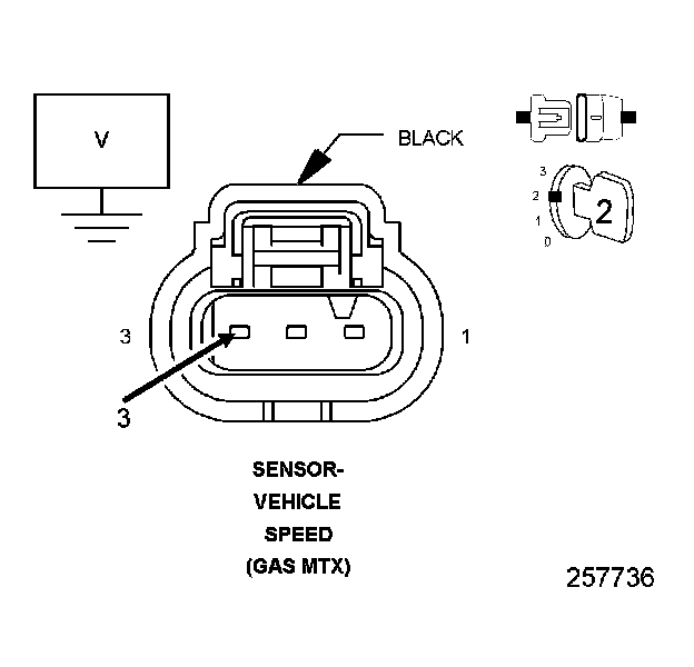 2. Using a 12-volt test light connected to 12 volts, check the (K975) Sensor Ground circuit in the Vehicle Speed Sensor harness connector.