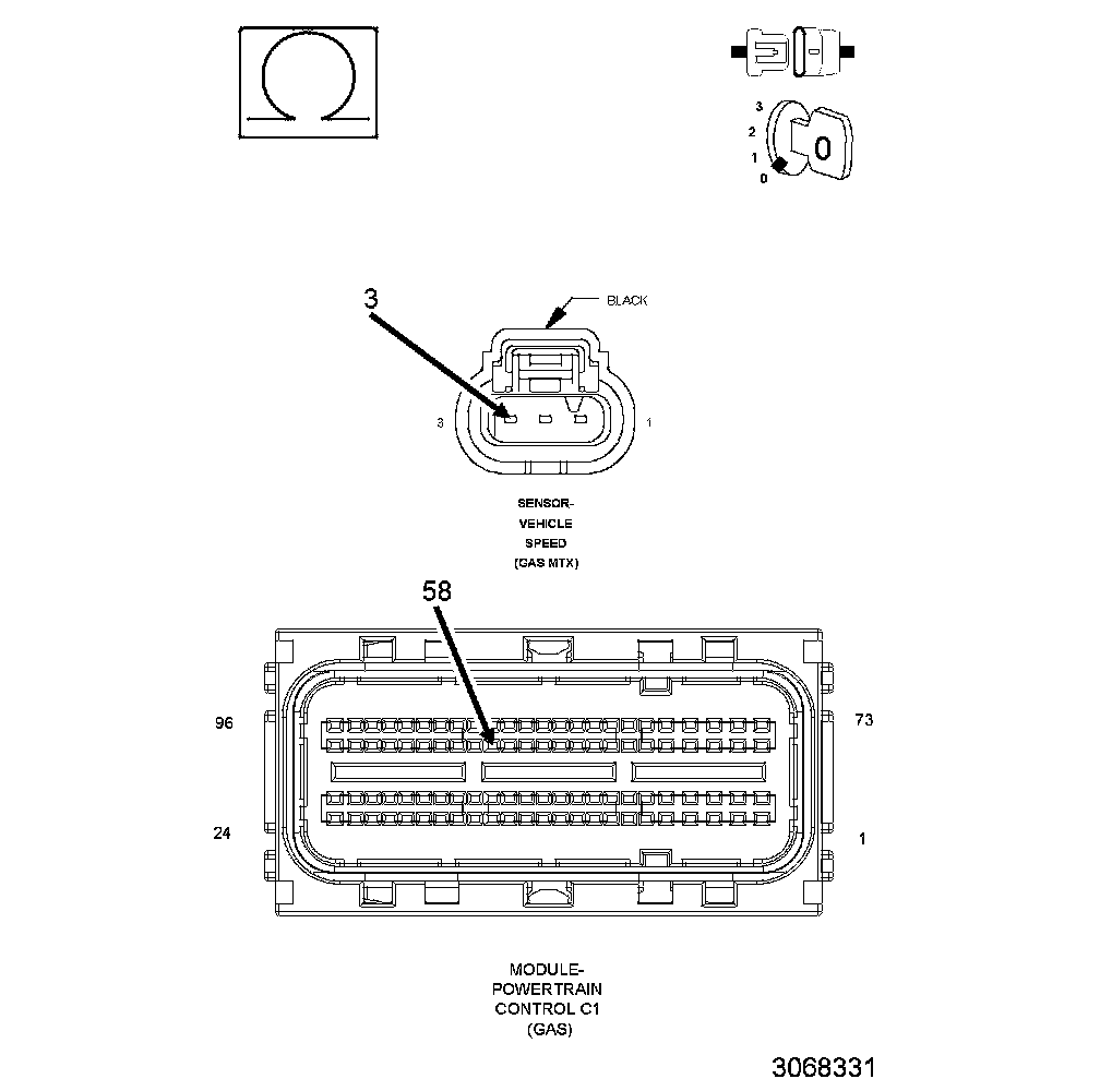 1. Using the wiring diagram/schematic as a guide, inspect the wiring and connectors between the Vehicle Speed Sensor and the Powertrain Control Module (PCM).
