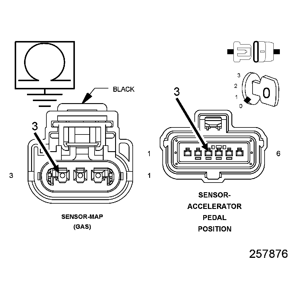 1. Inspect the (K854) 5-Volt Supply circuit between the Accelerator Pedal Position Sensor harness connector and the PCM harness connector.