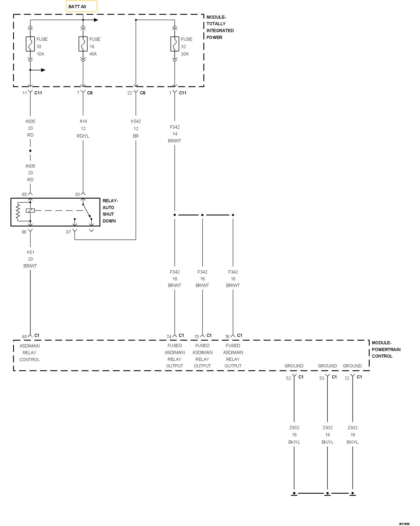 - Repair the open in the (K51) ASD Relay Control circuits.