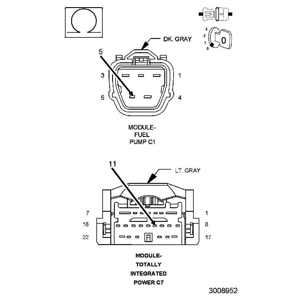 4. Using a 12-volt test light connected to ground, check the (N1) Fuel Pump Control Output circuit at the Fuel Pump Module harness connector.