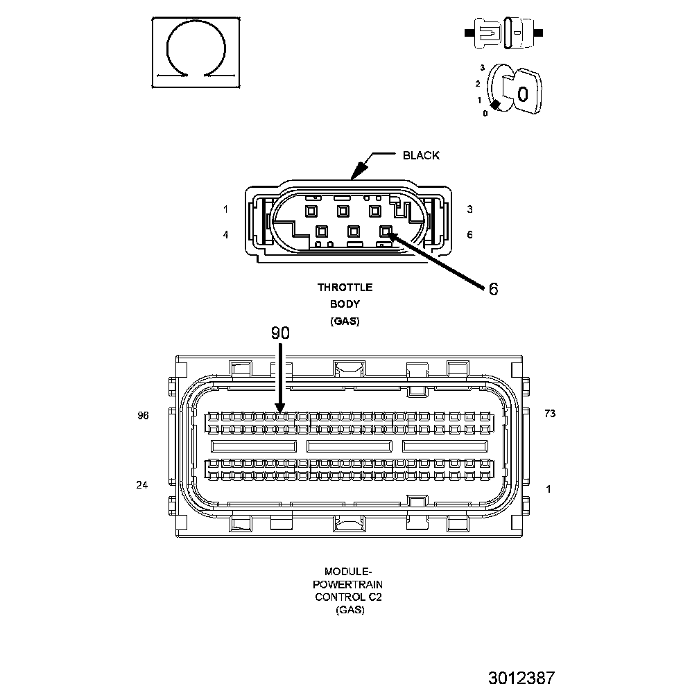 1. Using the wiring diagram/schematic as a guide, inspect the wiring and connectors between the Throttle Body and the Powertrain Control Module (PCM).