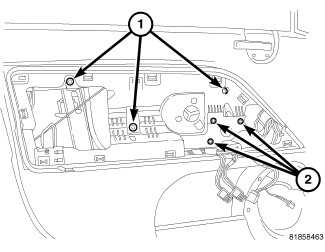 5. Using a trim stick or equivalent, remove the outside mirror trim (2).