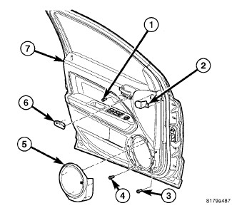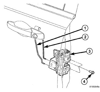 13. Pull the front of the trim module (1) out from the door and forward to remove the latch.