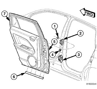 With the help of an assistant, carefully remove nuts (1) from door studs.