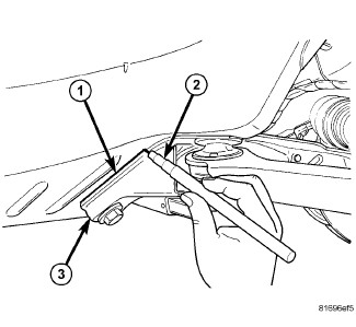 13. Mark the crossmember (3) to body location (1) using a grease pencil (2) or equivalent.
