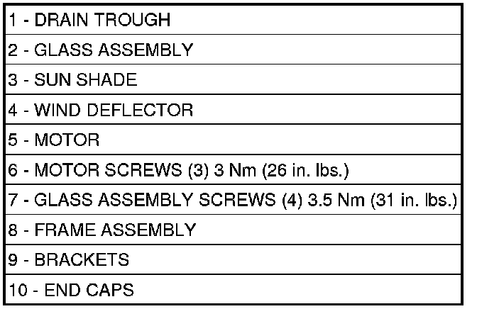 The sunroof is electrically operated from two switches located on the windshield header, between the map lamp. To operate the sunroof the ignition switch must be in either the Accessory or On/Run position. One switch (vent) is a push button type and opens the sunroof to the vent position only. The other switch (open/close) is a rocker type for opening and closing the sunroof. Pressing and releasing the open button once the sunroof will express open and the wind deflector will raise. If the button is pressed a second time the sunroof will stop in that position. Pressing and holding the close button will close the sunroof. If the close button is released the sunroof will stop in that position. Also, by pressing the close button the sunroof will close automatically.