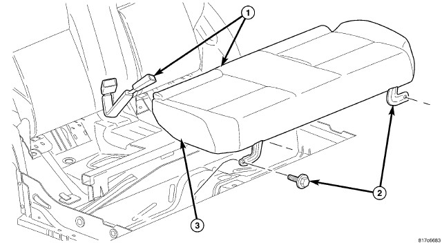 Lift the front of the cushion (3) up and remove the cushion from under the