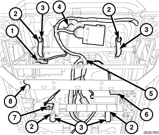 6. Connect the wire harness connectors (1, 6 and 7) to the three power seat motors.