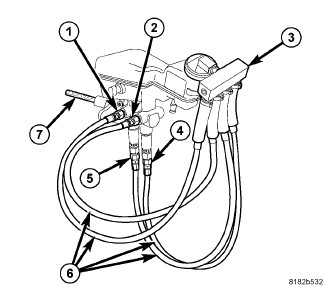 c. Thread Bleeder Tube Adapter (4) into the proportioning valve in the lower secondary outlet port of the master cylinder. Tighten Adapter to 17 Nm (150 in. lbs.).