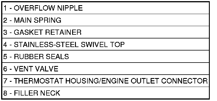 A replacement cap must be of the type designed for a full pressure coolant systems. This design ensures coolant return to the radiator.