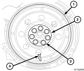 3. Remove flex plate/flywheel (1).