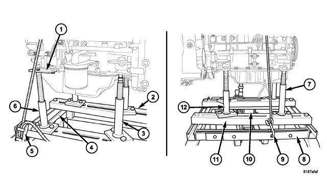 5. Remove engine from cradle (11) and mount engine on a suitable repair stand.