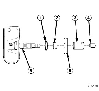 NOTE: Any time a sensor is installed on a wheel, a new Sensor-To-Wheel Seal (2), Metal Washer (1) and Valve Stem Nut (3) must be installed to ensure air tight sealing. A service kit is available.