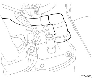 3. Depress locking tab on vapor hose connector and pull off of canister.