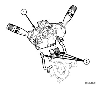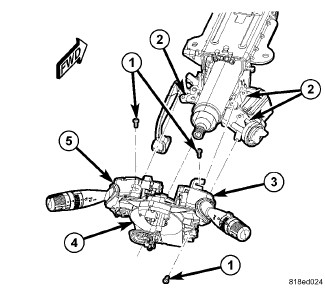 5. Reinstall the left multi-function switch (5) onto the clockspring. Left Multifunction Switch - Installation.