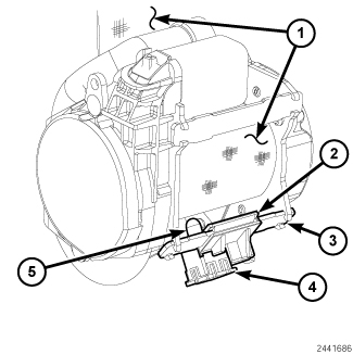 3. Push the switch onto the tie bar until the integral latch feature (2) is fully engaged over the tie bar.
