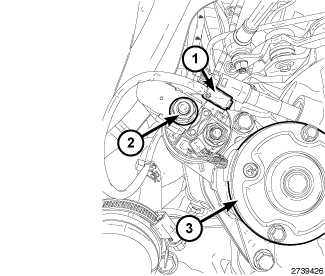 3. Connect the electrical connector (1) and the B+ cable (2) from the starter (3).