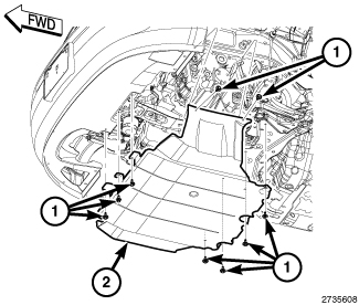 4. If equipped, install the belly pan (2).