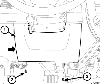 9. Place the steering column opening cover (1) in place and seat the clips fully.