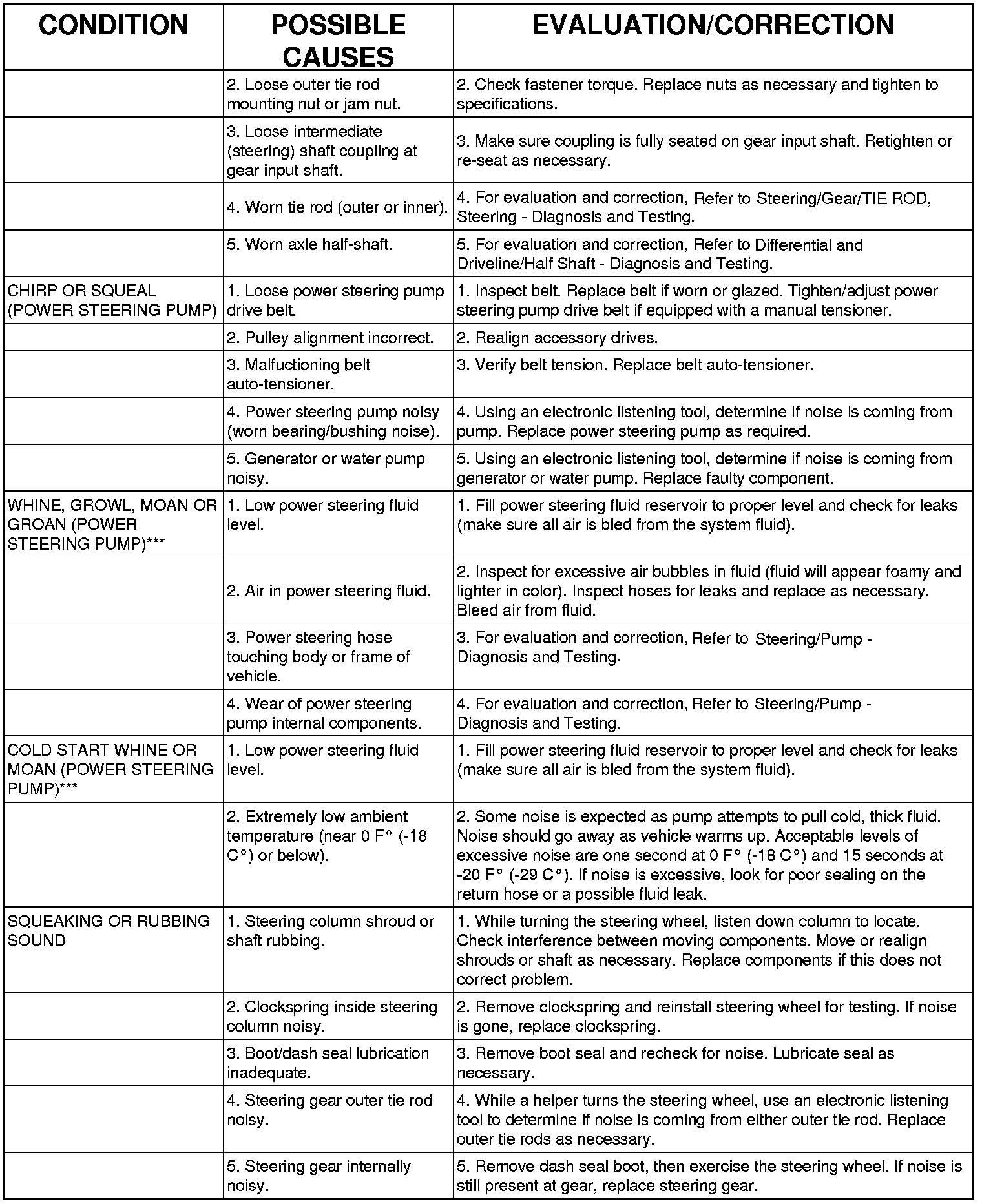 NOTE: *** Power steering pump growl/moan/groan results from the development of high pressure fluid flow. Normally this noise level should not be high enough to be objectionable.