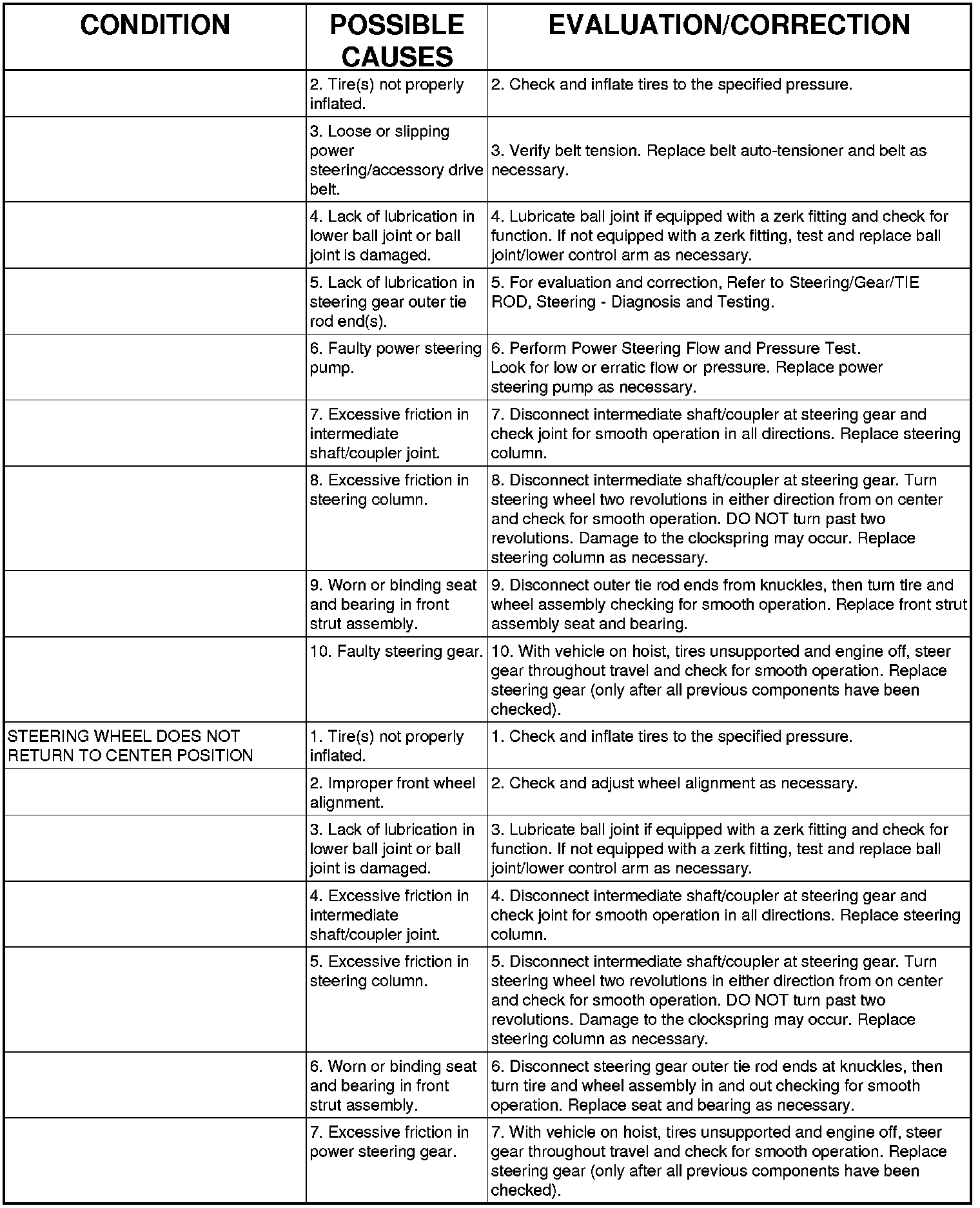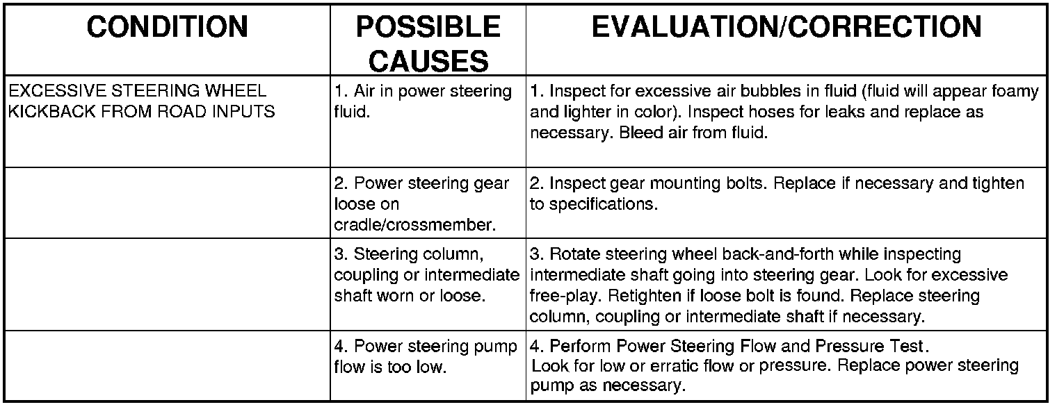 NOTE: * Extremely cold temperatures may cause power steering fluid aeration. The air should work its way out of the system as the fluid warms.