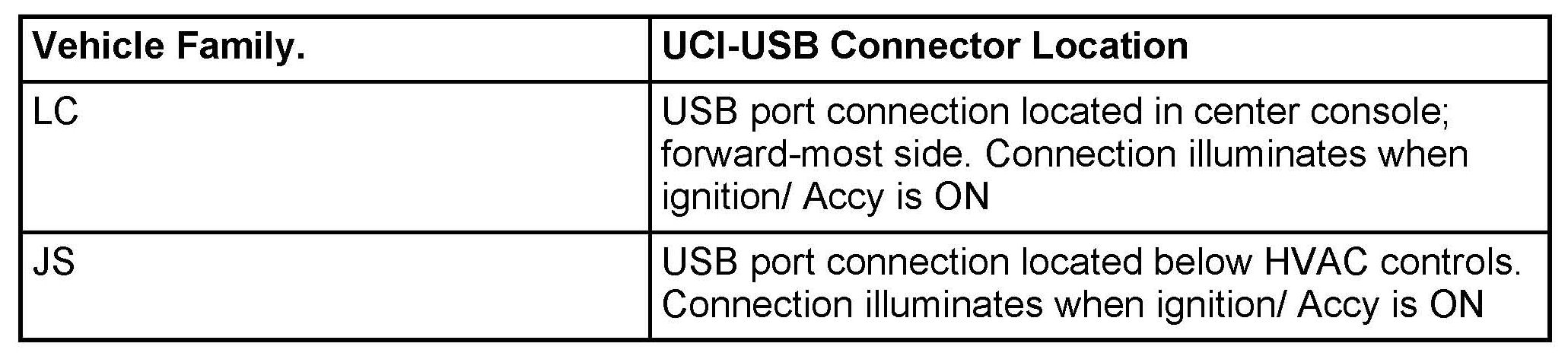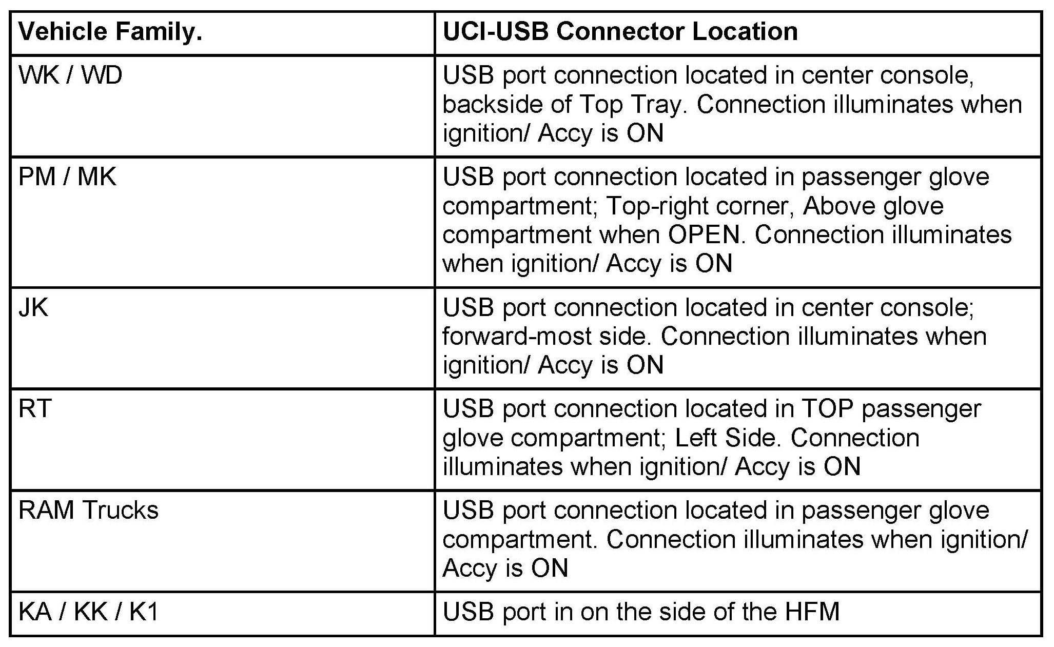 HFM Remote USB Port Connector Location Table