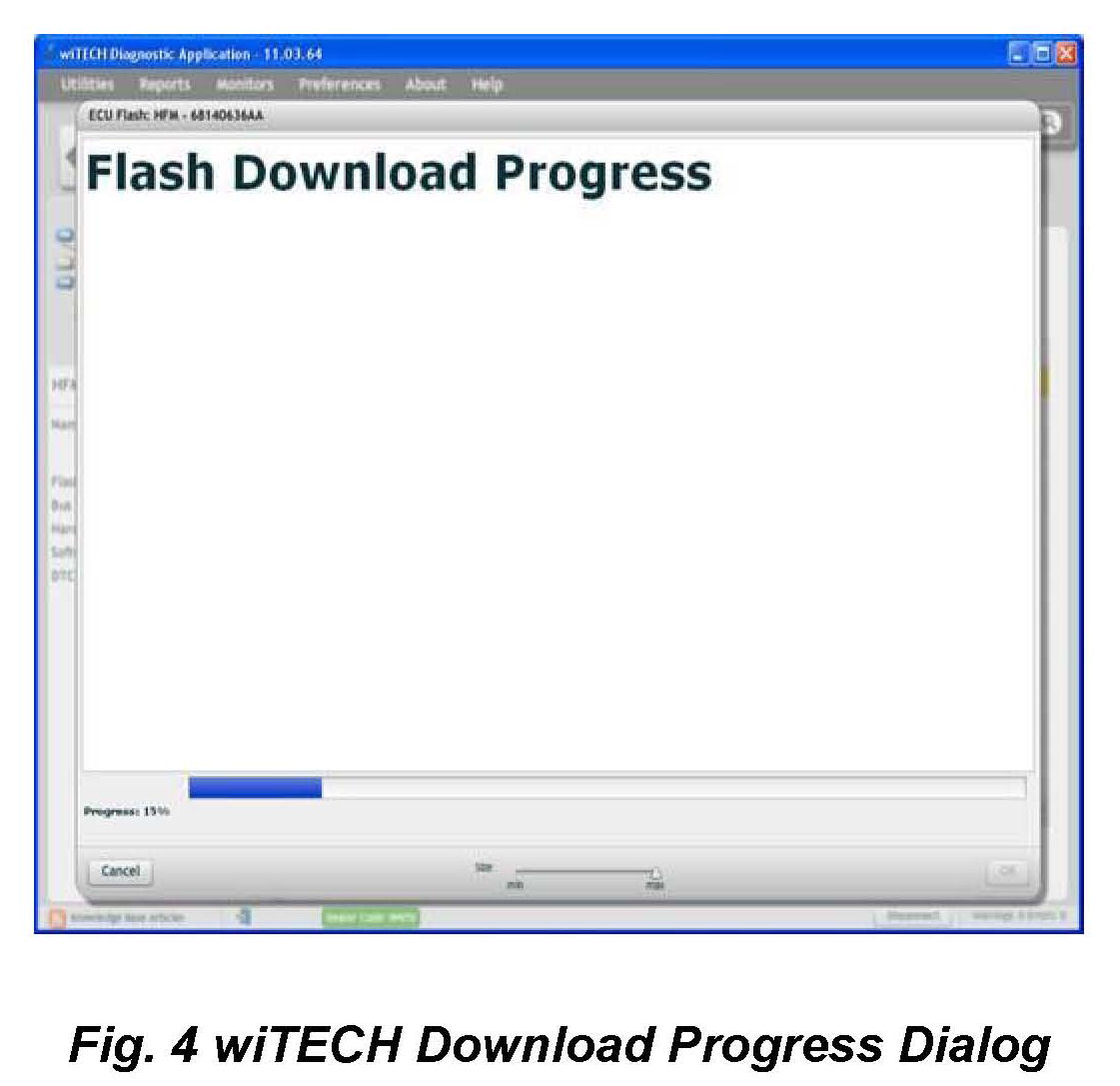 6. Proceed with the wiTECH Diagnostic Application to reflash the HFM (Fig. 2). Help using the wiTECH Diagnostic Application for flashing Hands Free Module is made available through the wiTECH Diagnostic Application. For instructions, select the "HELP" tab on upper portion of the wiTECH window, then "HELP CONTENTS". This will open the Welcome to wiTECH Help screen where help topics can be selected.
