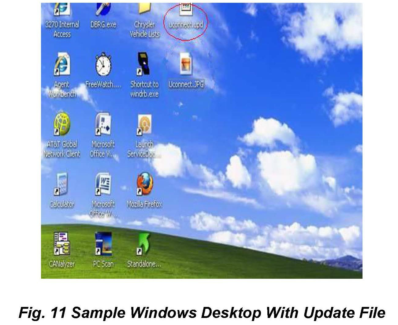 14. Insert a blank USB Memory Stick into a USB port on the wiTECH computer, and then "drag and drop" the uconnect.upd file from the computer desktop (Fig. 11) onto the blank USB Memory Stick.